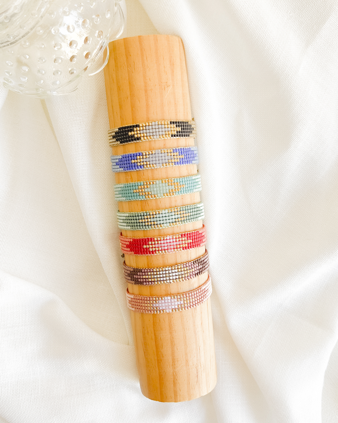 En Ntropia siempre hemos trabajado con cuentas de cristal Miyuki que se caracterizan por su variedad de colores y la perfección de sus acabados. Creamos para vosotras bonitos patrones ensamblando una a una cada cuenta con técnicas de tejido artesanales logrando un encaje perfecto. Dejamos volar la imaginación para ofreceros los diseños con los contrastes más bellos cada temporada.