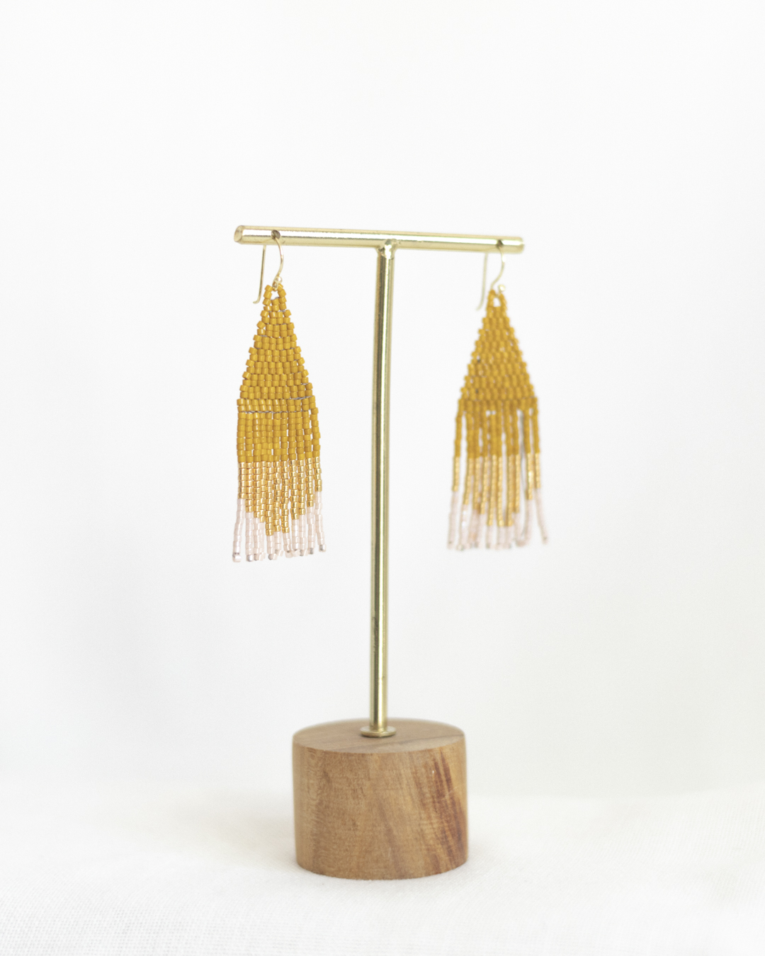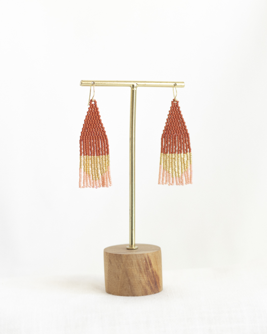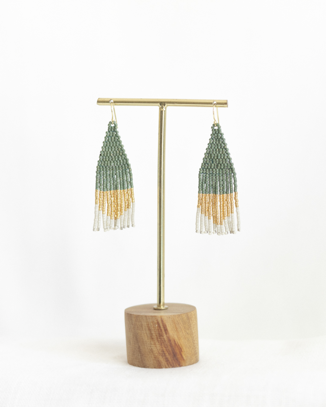 Cuentas de cristal miyuki, tejidas con hilo de nylon extra resistentes. Gancho de pendiente de plata con baño de oro de 18 kt.