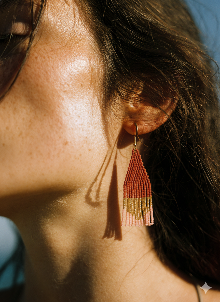 Los pendientes Nómada son ligeros, llenos de color y con ese aire libre que invita moverse sin prisas, como la brisa del Mediterráneo.
