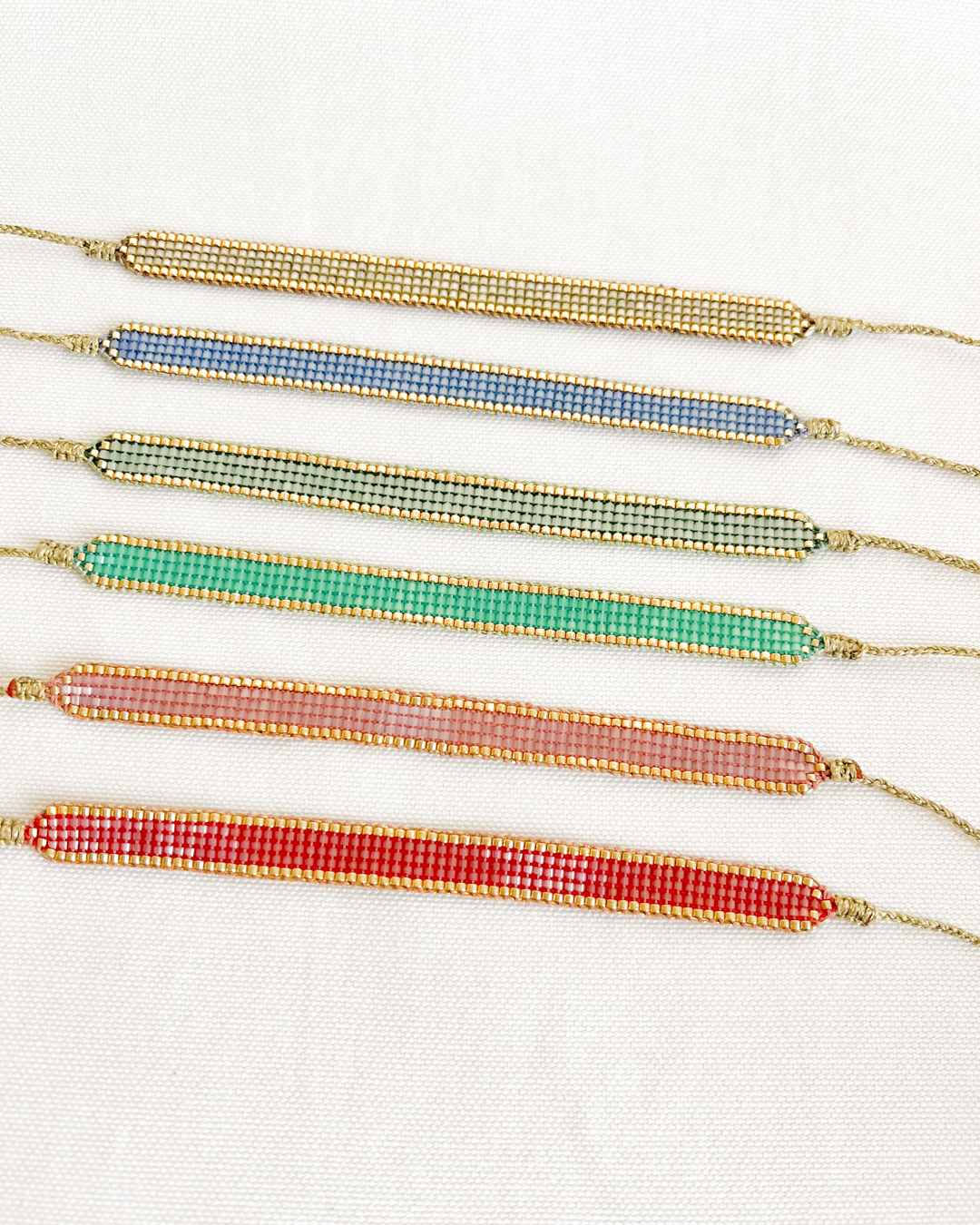 Es una de nuestras joyas artesanales preferidas. Tejida en telar, ensartando las cuentas una a una, la pulsera Formentera es una lluvia de destellos en tu muñeca cuando la luz incide sobre la pulsera, debido al acabado facetado en múltiples caras de cada cuenta. La pulsera Formentera combina con cualquier estilo.