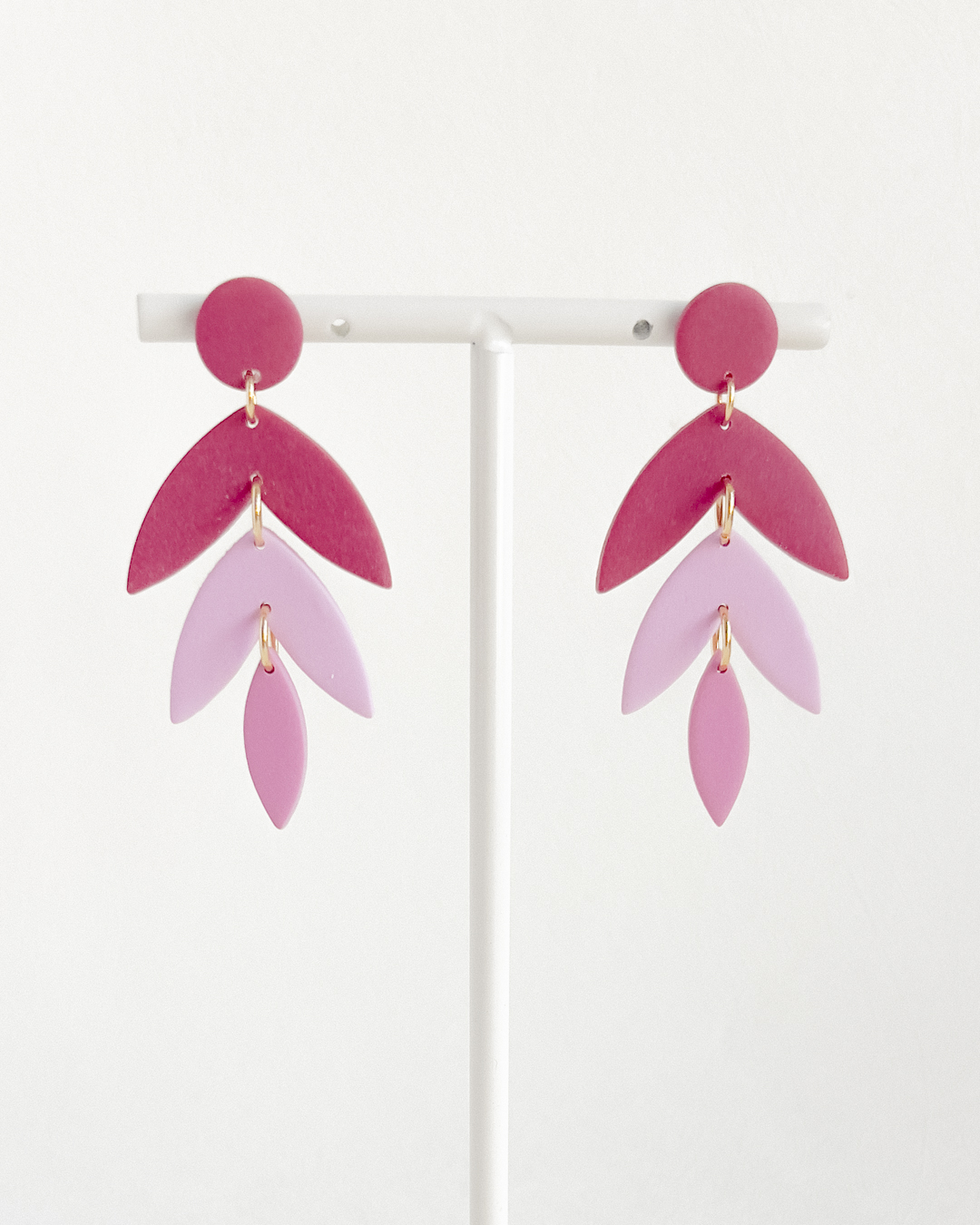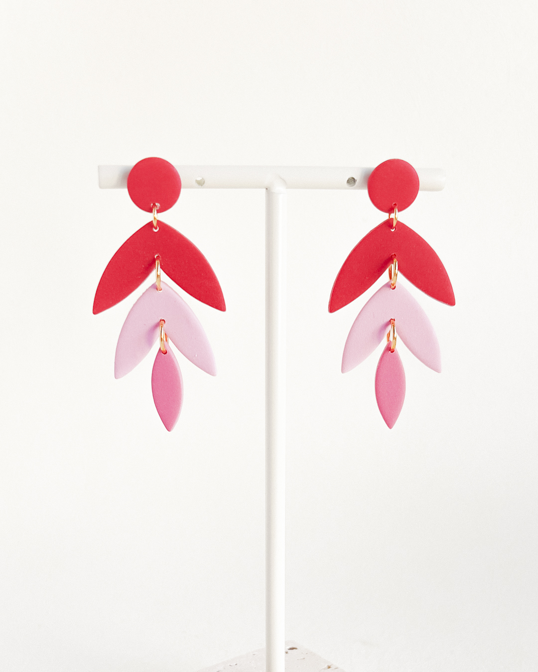 Arcilla polimérica, anillas doradas de acero inoxidable, trasera de acero inoxidable.