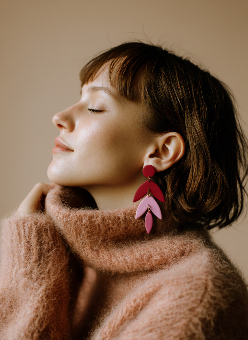 A pesar de su tamaño, son ligeros y cómodos, con un sutil movimiento que aporta dinamismo y luz al rostro. Una pieza artesanal pensada para acompañarte en los días tranquilos y las ocasiones especiales.