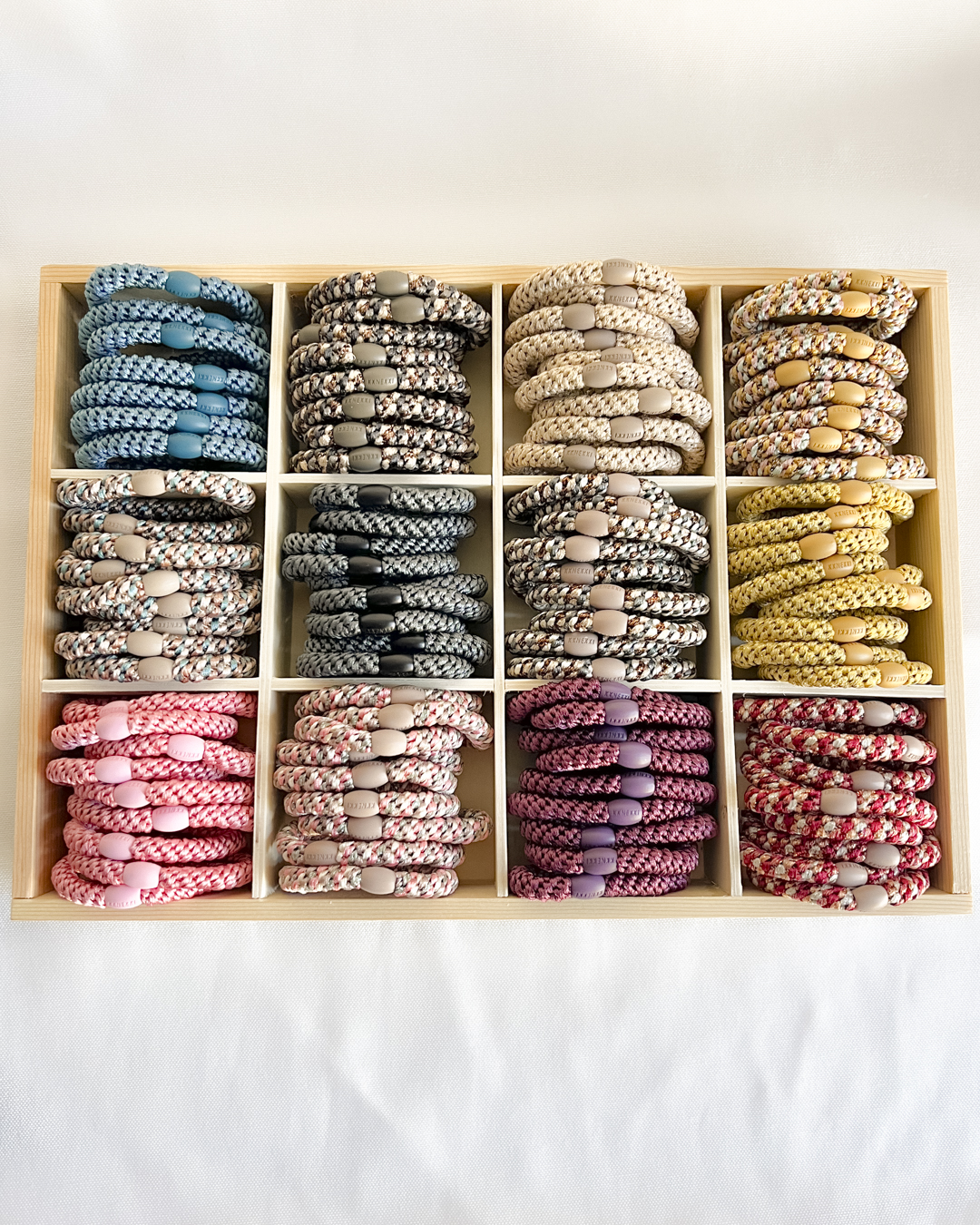 Las Kknekki son gomas para el pelo y pulseras de alta calidad, reconocidas a nivel mundial por su técnica de tejido única que utiliza más de 60 hilos para crear un diseño duradero, cómodo y suave con el cabello.